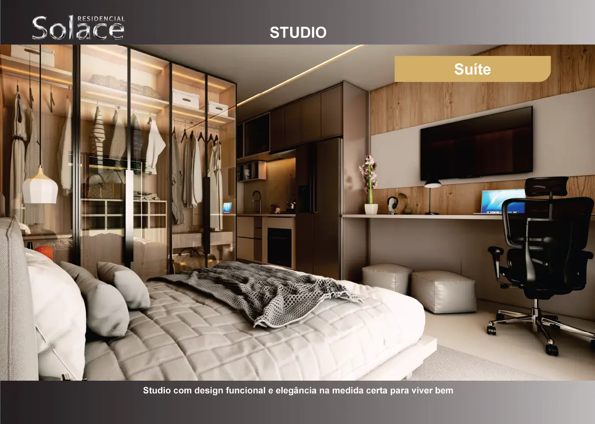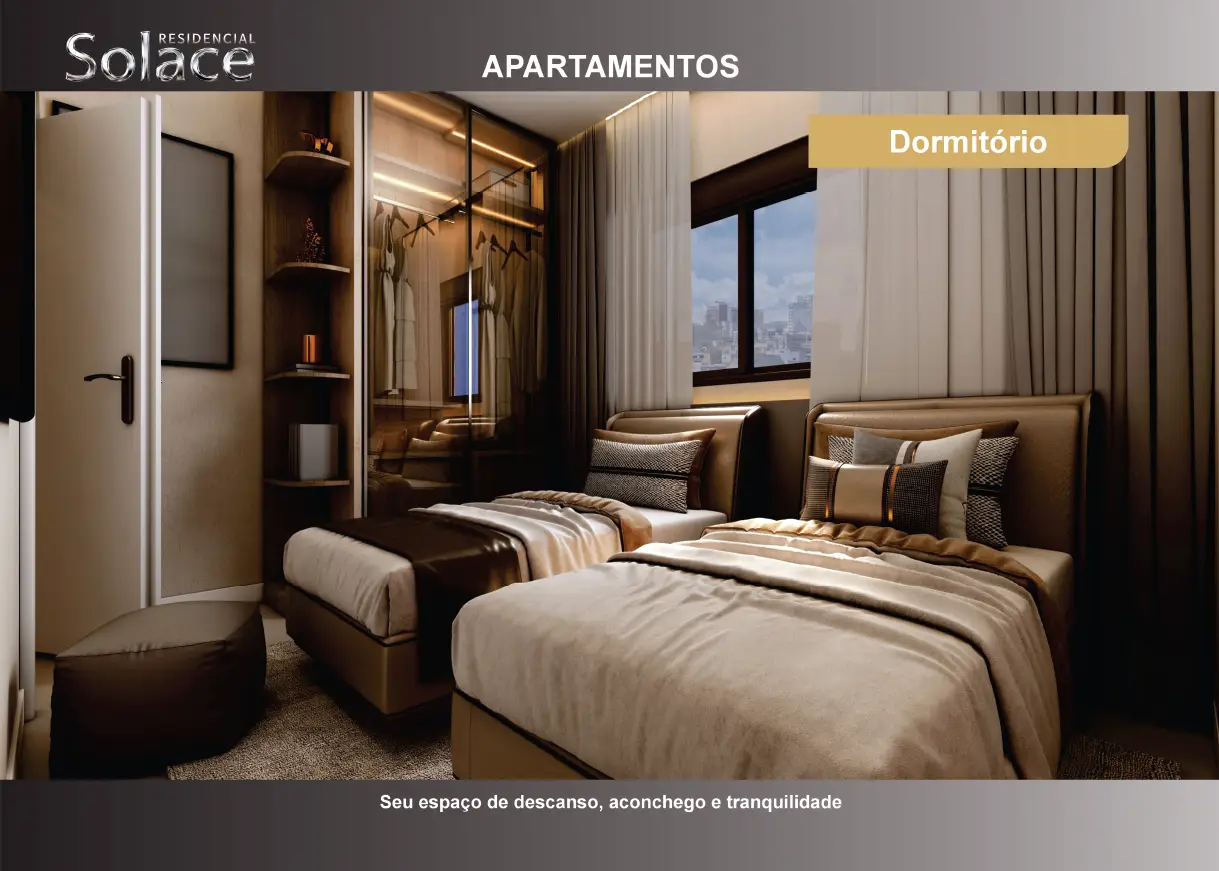 O Residencial Solace conta com opções de studios e apartamentos, seja para você que busca um imóvel compacto, mas otimizado; ou para você que busca o seu mais novo lar para você e sua família em um apartamento amplo e em uma localização privilegiada.