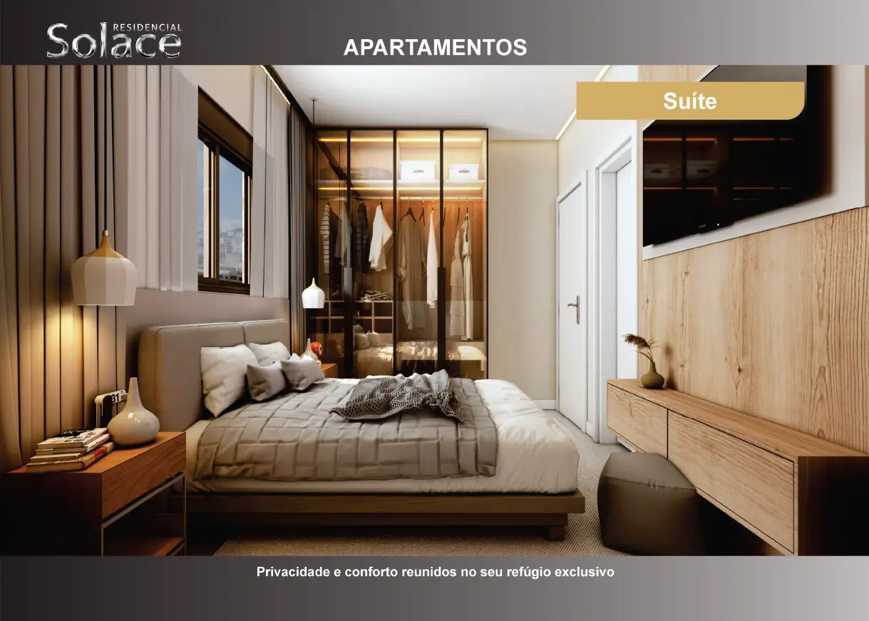 As unidades do Solace foram pensadas para englobar as mais diversas necessidades. Seja para aqueles que buscam um imóvel compacto e otimizado; seu apartamento para iniciar uma vida a dois; ou até mesmo um investimento inteligente e muito bem localizado.